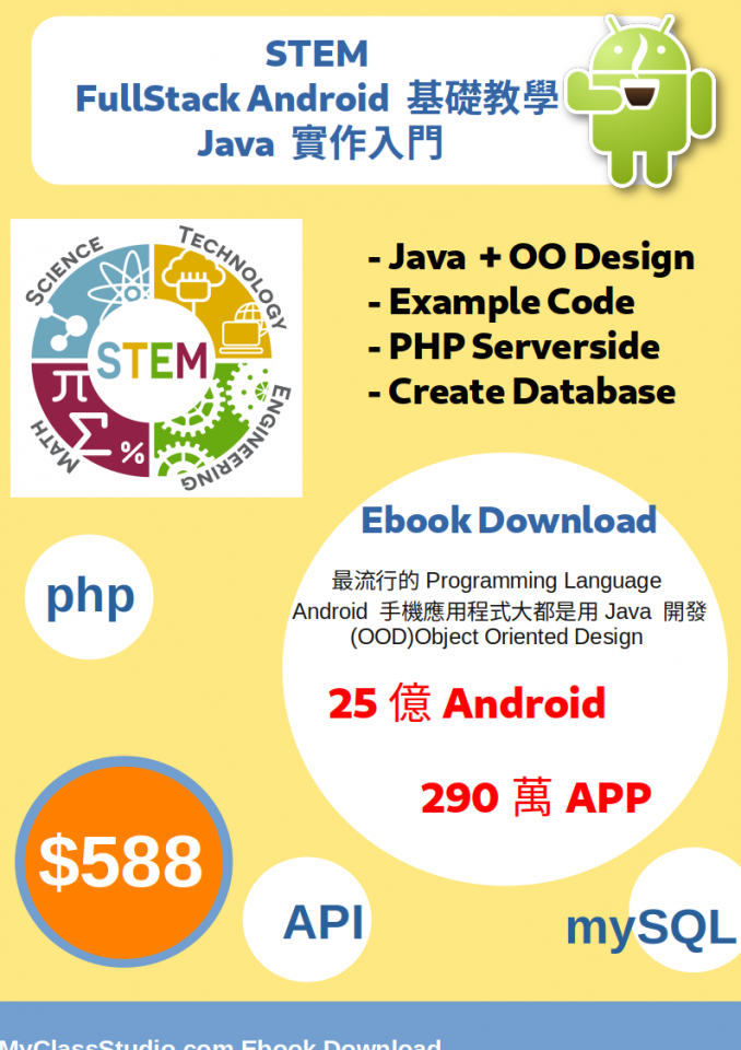 Java是當今最流行的Programming Language, Android 手機應用程式大都是用Java 開發