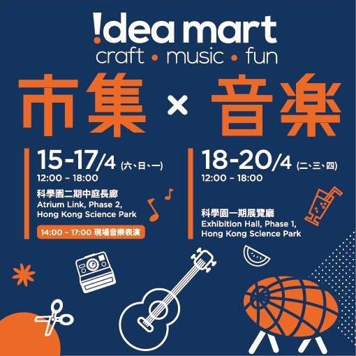 長假期又嚟喇! 大家諗定復活節去邊未呢?嚟緊4月15-17號,科學園 !dea mart等緊你! 今次有超過50個攤位,其中包括各式手工製品、手作雜貨、科學玩具、手工曲奇等等,仲有工作坊添! 另外,我哋首次同 IMusic Idol合作,為大家帶嚟一連串嘅音樂表演,支持本地音樂嘅你又點可以錯過呢?表演單位包括:莫凱謙 Mok Hoi Him、利佩芝 Ida、Hong Kong Singer Channel、 Musick TaB、韓梓亮 TL等等,為大家唱足3日! 仲有極受歡迎嘅「動感科學園地」同時舉行,無論大人、年青人、小朋友都好啱玩!今個復活節假期約定你喺科學園見啦!