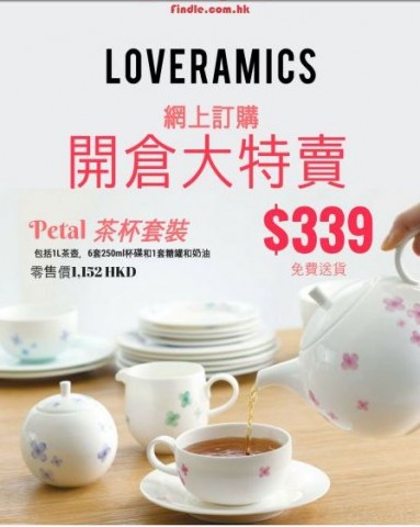 Loveramics 時尚陶瓷製品與FINDLE 香港網上特賣場平台合作, 獨家發售特賣商品 全線組合三折起發售。賣完即止。免費送貨。