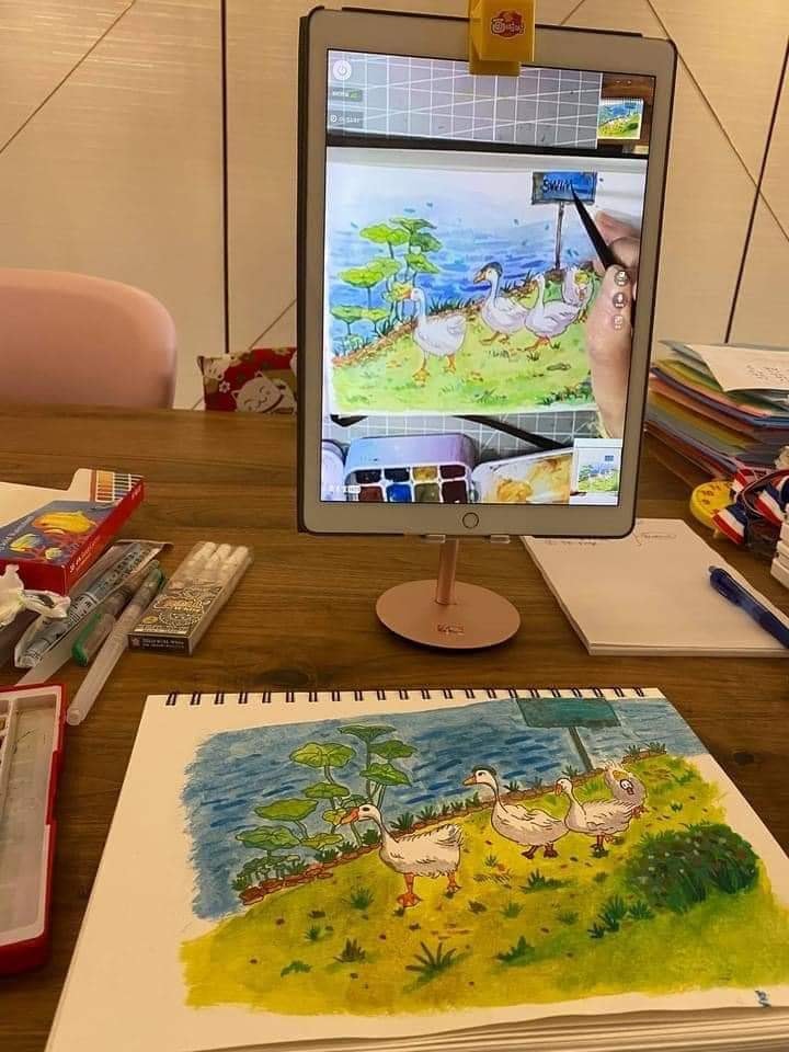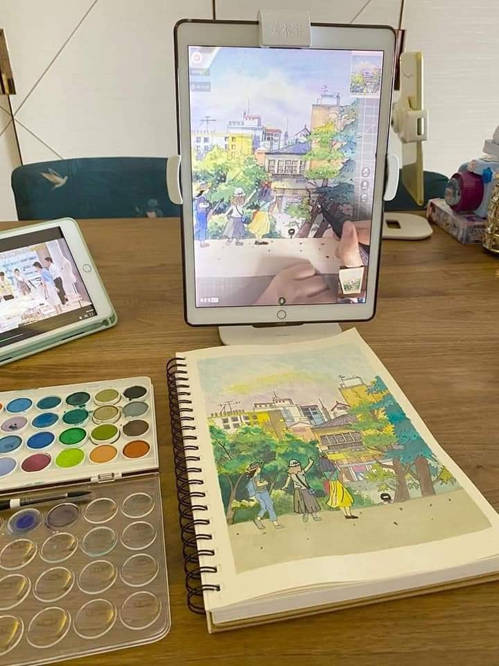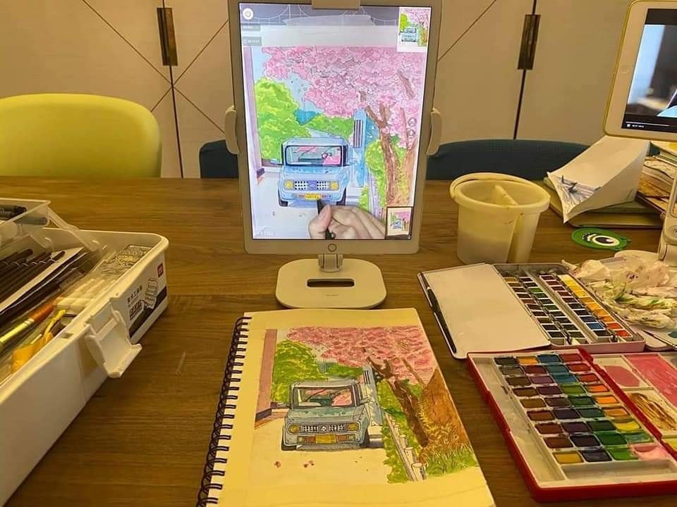 自己從每一幅圖畫學好每一個基礎,學習不同的線條、形狀,感受不同的顏料、素材